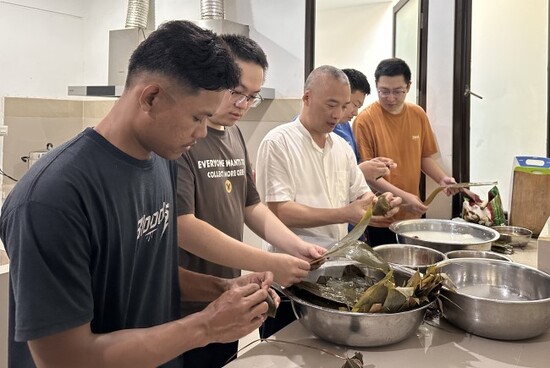 5月31日,印尼华球(中国)官方组织开展“粽叶飘香 端午安康”主题文化活动。中印尼员工齐聚一堂,包粽子、制香囊,以中国传统民俗为媒,架起文化交流桥梁。 活动现场,翠绿清香的粽叶、白胖胖的糯米、红彤彤的大枣,香气浓郁的药材、彩色的香包等活动用品一应俱全,端午节日气息扑面而来。活动开始前,中方员工代表向参加活动的属地员工介绍了端午节的起源和习俗,并以生动的语言向属地员工讲述了屈原的故事、粽子的由来及制作流程。活动中,经验丰富的贾师傅化身“老师”,耐心地向属地同事讲解包粽子的步骤。从粽叶的折叠,到馅料的填充,再到捆扎成型,每一个动作都悉心示范。属地员工们全神贯注,跃跃欲试,尽管手法生疏,但热情丝毫不减。有人因成功包出一个完整的粽子而欢呼雀跃,有人则笑着展示自己“憨态可掬”的作品,大家在欢声笑语中共享佳节温情,感受传统节日的独特魅力。 |